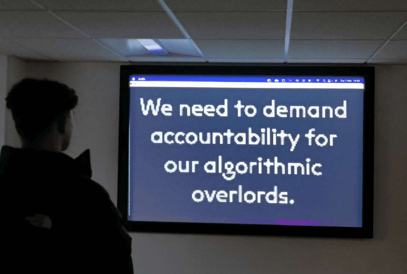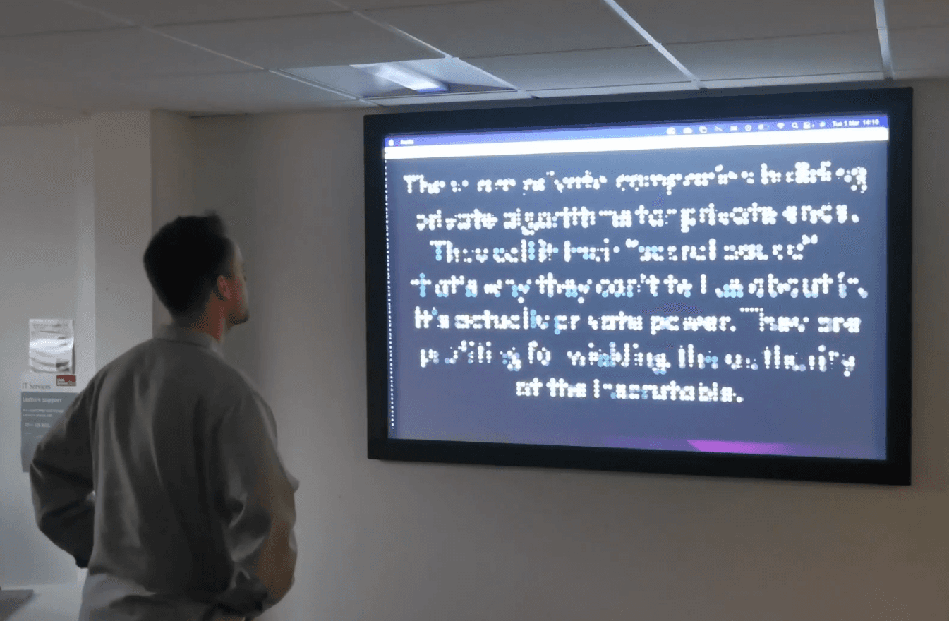 Used as an exhibition prototype with sound interactivity as the user tries to read between the lines of AI. The more the user tries to read the easier it gets and once they stop or not try hard enough it stays hidden.