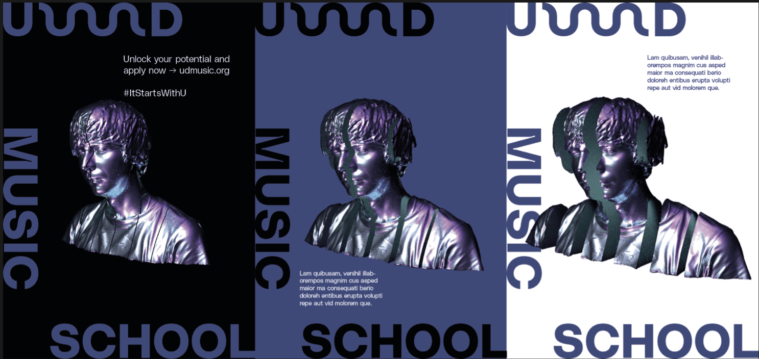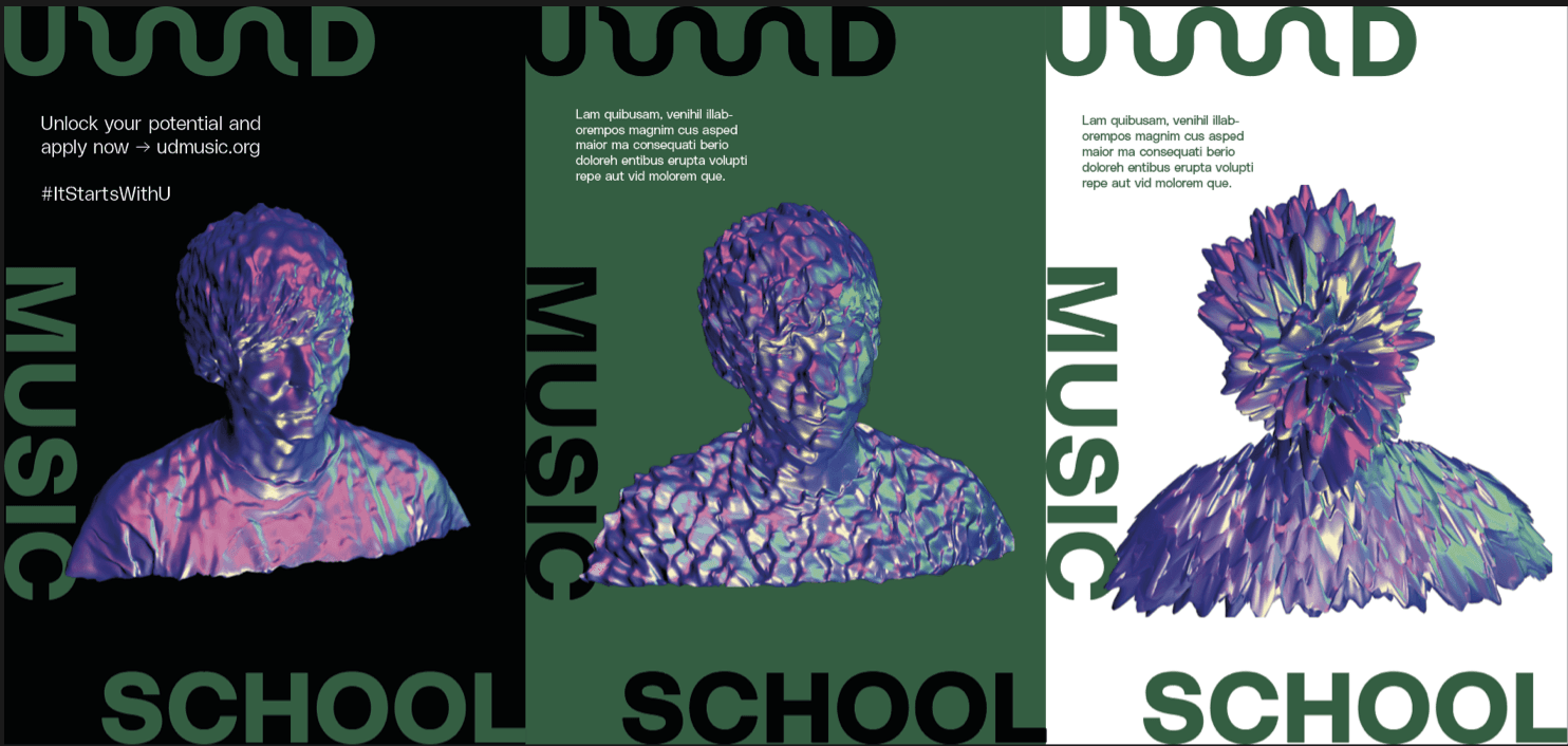 Working with cause-led branding and communications agency TEMPLO on this project for UD Music. UD Music educates, empowers and creates life opportunities for young people. I was tasked to test out different ways for 3D scans of artists to be able to interact with the sound of the music and it was interesting to see both 2D and 3D outcomes for this.